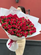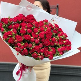 Это мощный, яркий и трепетный подарок: сотни насыщенно-красных роз, словно живое сердце, бьющееся от любви и страсти. Упакованные в чистую белую бумагу с лентой — они говорят без слов: «Ты — центр моего мира». Идеален для тех, кто ценит глубину чувств, эмоциональность и классическую красоту.