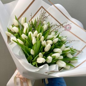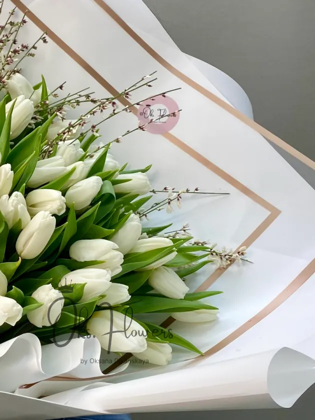 Это чистый, свежий и элегантный букет из белых тюльпанов — символ нового дня, надежды и чистоты чувств. Упакованный в матовую бумагу — идеален для тех, кто ценит простоту, спокойствие и природную красоту.