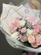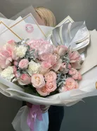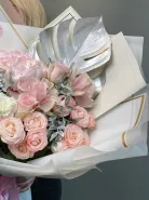 Букет из пудровых роз, гвоздик и нежных соцветий оформлен в лёгких сливочных тонах. Универсальный вариант для любого повода — от романтического сюрприза до благодарности. Закажите доставку цветов по Нижнему Новгороду — дарите тепло и улыбки.
