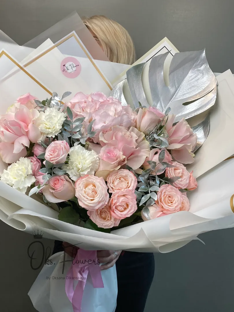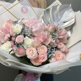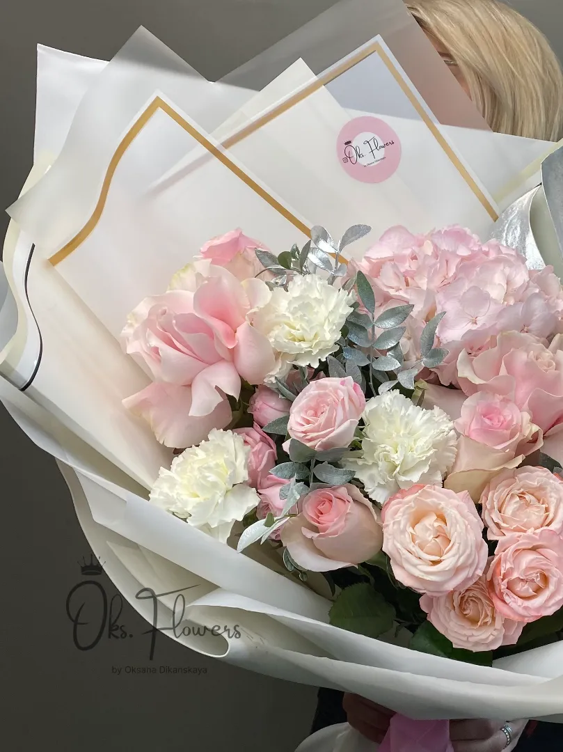 Букет из пудровых роз, гвоздик и нежных соцветий оформлен в лёгких сливочных тонах. Универсальный вариант для любого повода — от романтического сюрприза до благодарности. Закажите доставку цветов по Нижнему Новгороду — дарите тепло и улыбки.