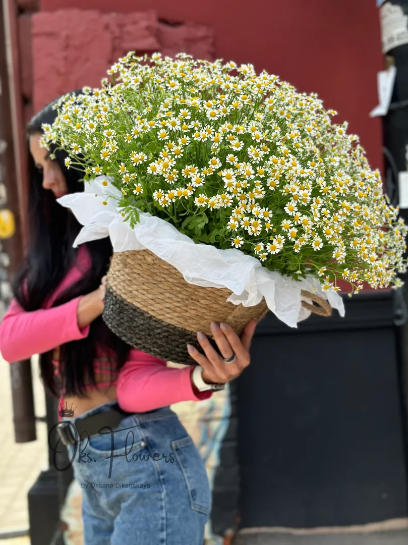 Это огромный, воздушный и светлый подарок — словно весь луг собрался в одной корзине. Мелкие ромашки, словно усыпанные солнечным светом, создают ощущение радости, свежести и беззаботности. Упакованный в натуральную корзину — он идеален для тех, кто ценит простоту, природную красоту и искренние эмоции.