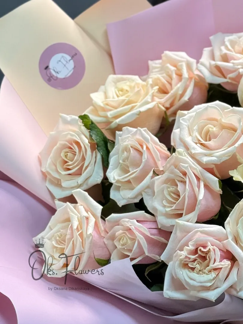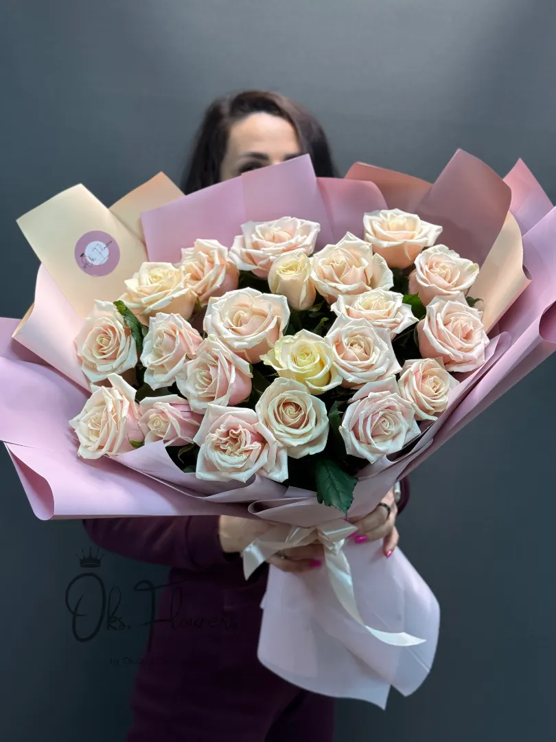 Это мягкий, трепетный букет из пастельно-розовых роз, словно шепчущая: «Я рядом. Я выбираю тебя снова и снова». Упакованные в нежную бумагу с лентой — они идеальны для тех, кто ценит доброту, чистоту чувств и тихую романтику.