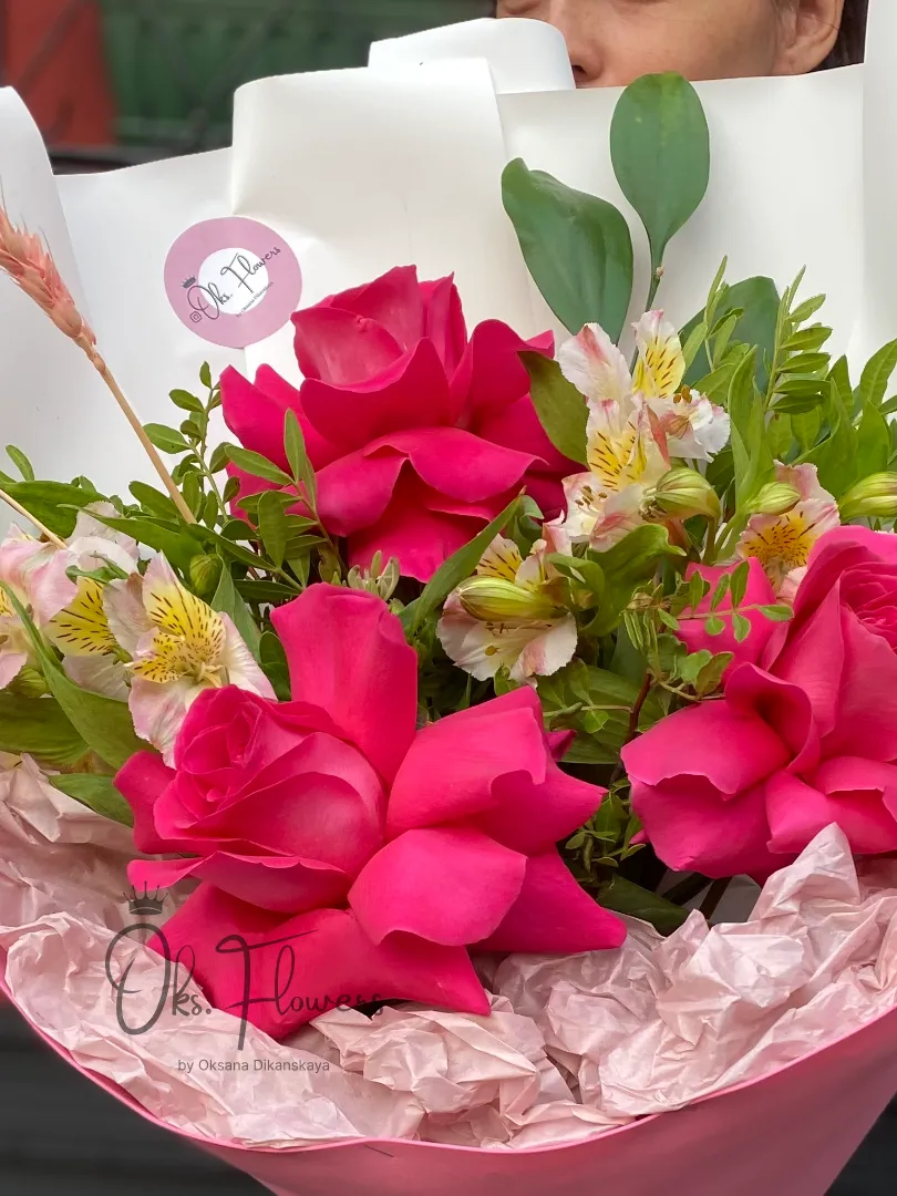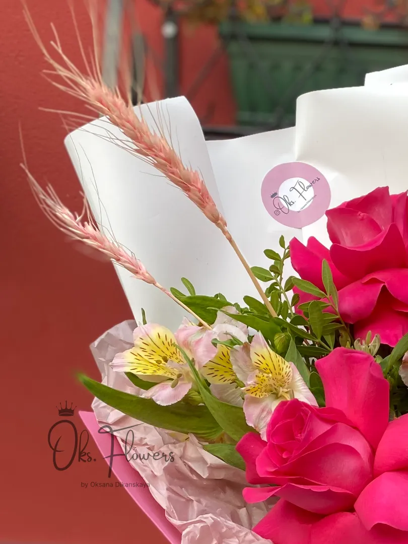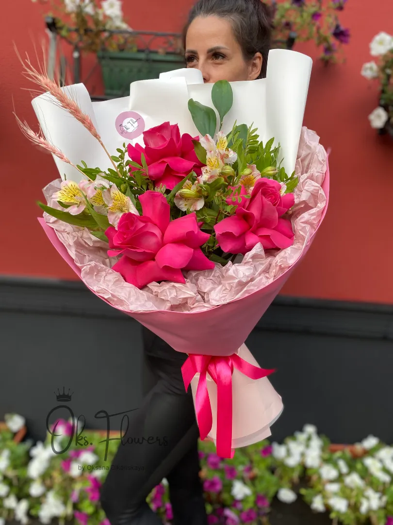 Это яркий, смелый букет из насыщенно-розовых роз, акцентных цветов — словно фейерверк чувств, взорвавшийся в вашем сердце. Упакованный в розовую бумагу — идеален для тех, кто ценит драйв, красоту и безупречный вкус.