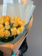 Тёплый и светлый букет наполнен энергией счастья. Мягкие жёлто-персиковые розы символизируют радость и дружбу, делая этот букет идеальным подарком для коллеги, учителя или просто для хорошего настроения. Купить букет с доставкой в Нижнем Новгороде можно в пару кликов.