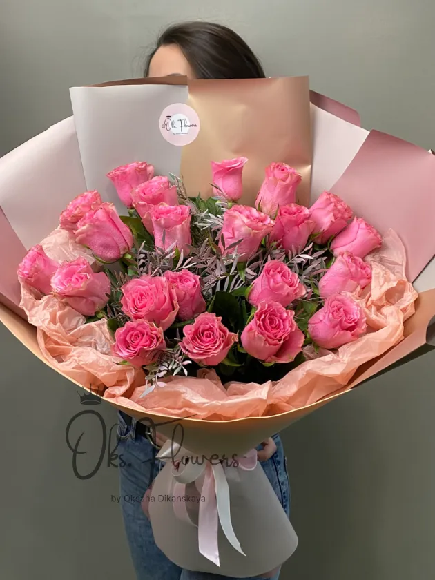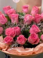 Классика, которая не выходит из моды. Букет из насыщенно-розовых роз в карамельной упаковке — символ любви, радости и нежности. Подойдёт для любого праздника или просто чтобы сказать “спасибо”. Благодаря плотной упаковке и свежим розам, букет долго сохраняет свежесть и форму.