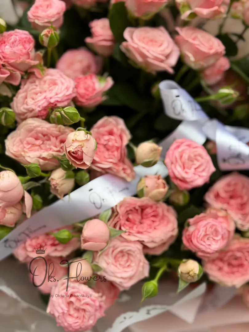Пусть этот букет станет вашей «Розовой Гаванью» — местом, куда можно вернуться, чтобы почувствовать себя любимой, защищённой и нежно обласканной. Каждая маленькая розочка — словно тёплое объятие: пышные бутоны, нежно-розовые лепестки и свежая зелень создают атмосферу спокойствия и уюта. Это не просто цветы — это эмоция, подаренная в каждом лепестке.