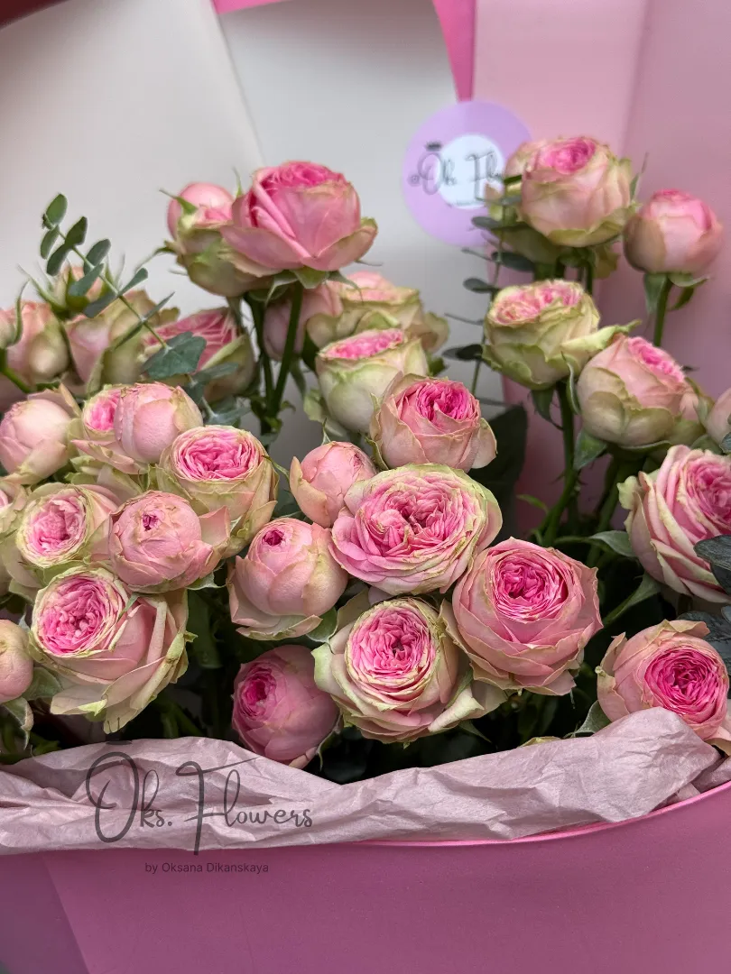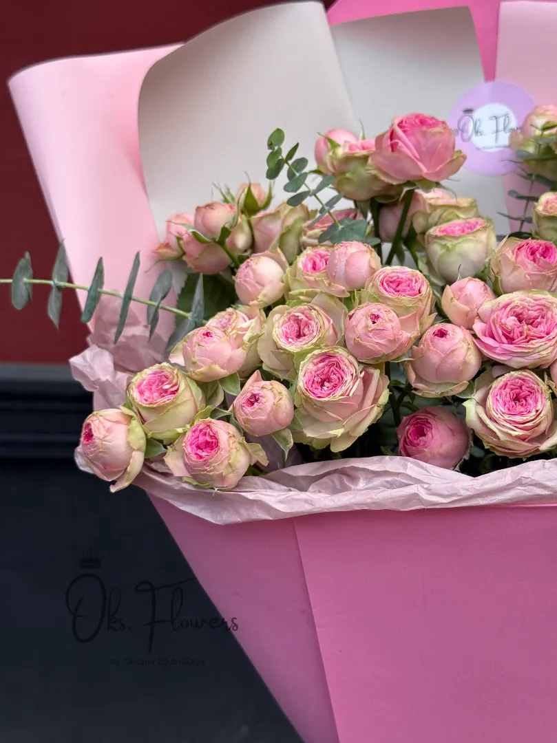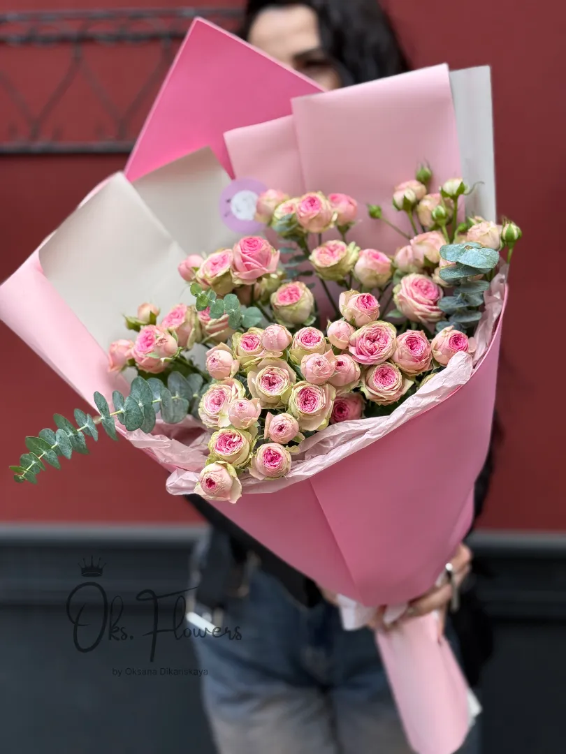 Подарите близкому человеку не просто букет — а «Розовый Шепот». Это нежная симфония маленьких розочек, словно сотканная из утреннего света и тихих признаний. Каждый бутон — будто шёпот доброго слова, а свежий эвкалипт добавляет композиции лёгкости и свежести. Упакованный в пастельно-розовую упаковку — он идеален для тех, кто ценит нежность, романтику и чистые чувства.