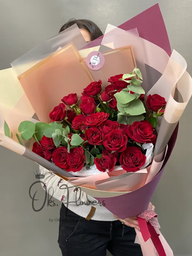 Классический букет из алых роз — символ настоящей любви и благодарности. Универсальный вариант, когда слова не нужны.