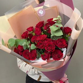 Классический букет из алых роз — символ настоящей любви и благодарности. Универсальный вариант, когда слова не нужны.